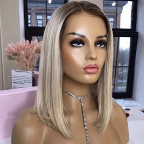 Jewish Lace Top Wig Full Cuticle Aligned Raw Virgin European Hair Blonde Balayage with Dark Root HD Lace Front Wig for Women