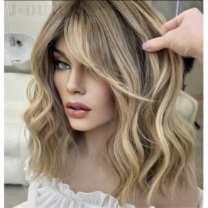 Fast Shipping 16inch bob European Hair with bangs Ashy Blonde Highlight with Dark Root HD Glueless & Invisible Luxe Lace Top 13x4 HD lace front Wig 180% density for Women Hair Loss