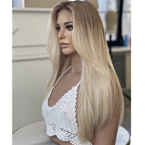 Healthy Luscious Natural Blonde Jewish Wig Premium Remy European Human Hair Balayage Blonde Color Lace Front Wig for White Women